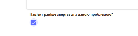 - Прапорець - елемент, що дозволяє користувачу зробити вибір, наприклад: назва поля "Пацієнт раніше звертався з даною проблемою?" - якщо "Так" - зазначаємо прапорець, якщо ж "Ні" - залишаємо порожнім;