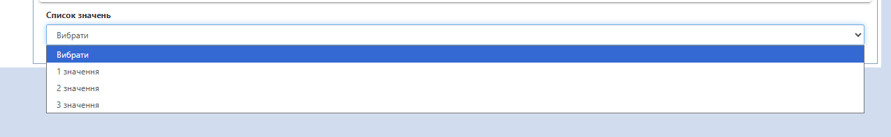 - Список - елемент, який містить у собі декілька значень і з цього переліку можна обрати тільки 1 значення;