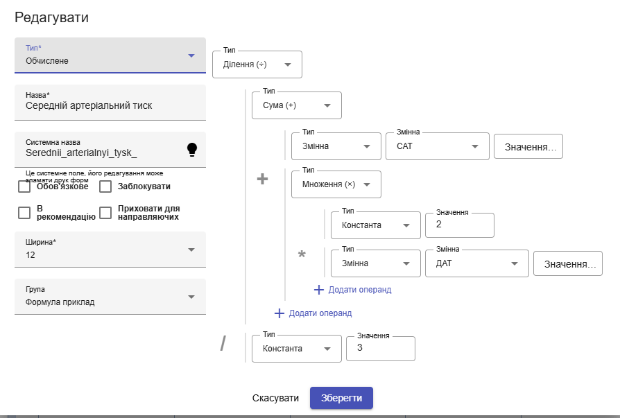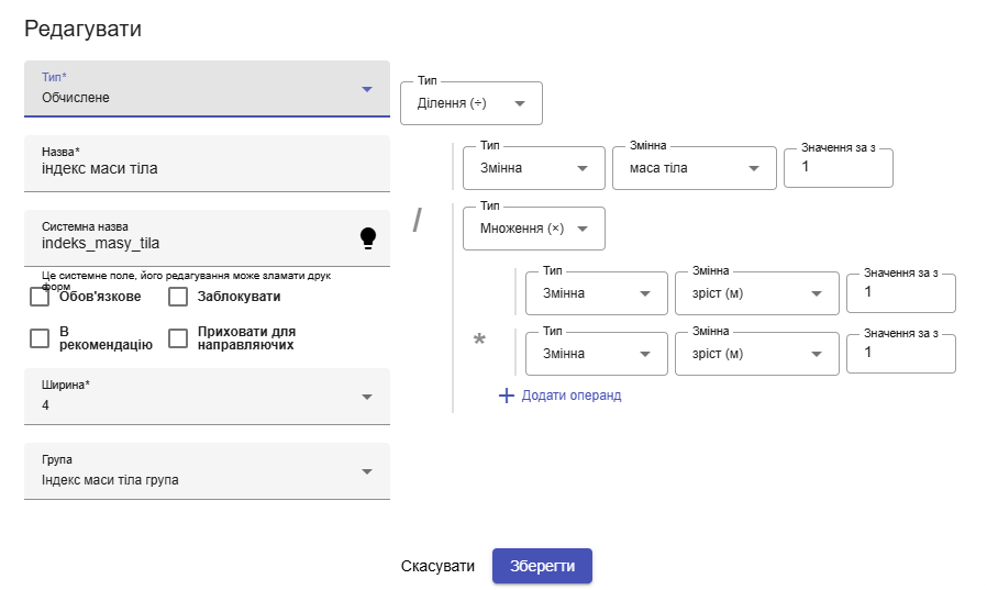 - Обчислене - елемент, який дозволяє у форміналаштувати потрібні математичні формули для обрахунку певних потрібних Вам показників.