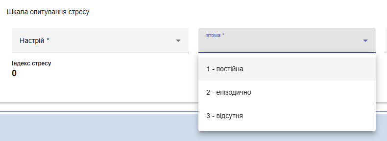 - Поле для цифр (Список) - елемент, який дозволяє у формі налаштувати різні, наприклад, анкети з вибором значення з описом, для подальшого визначення стану пацієнта за даними показниками. Дане поле підійде для створення анкет, наприклад, по державній програмі "Скринінг 40+".