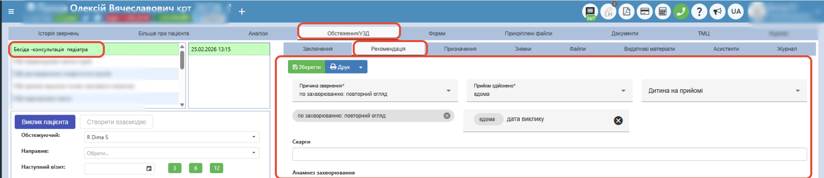 7. В рекомендацію - зазначаємо чи потрібно додати дане поле форми у вкладку "Рекомендація" в карті пацієнта, якщо наприклад, дану форму буде закріплено до певної послуги у пункті меню "Прайси" - "Послуги" (детальніше тут).