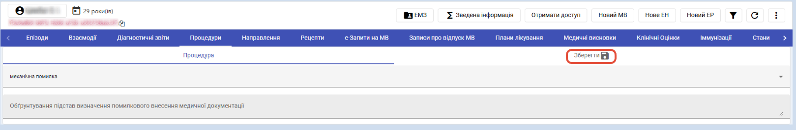 - Користувач має перебувати в карті пацієнта ЕСОЗ