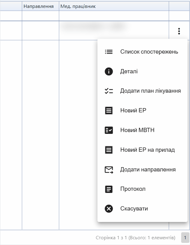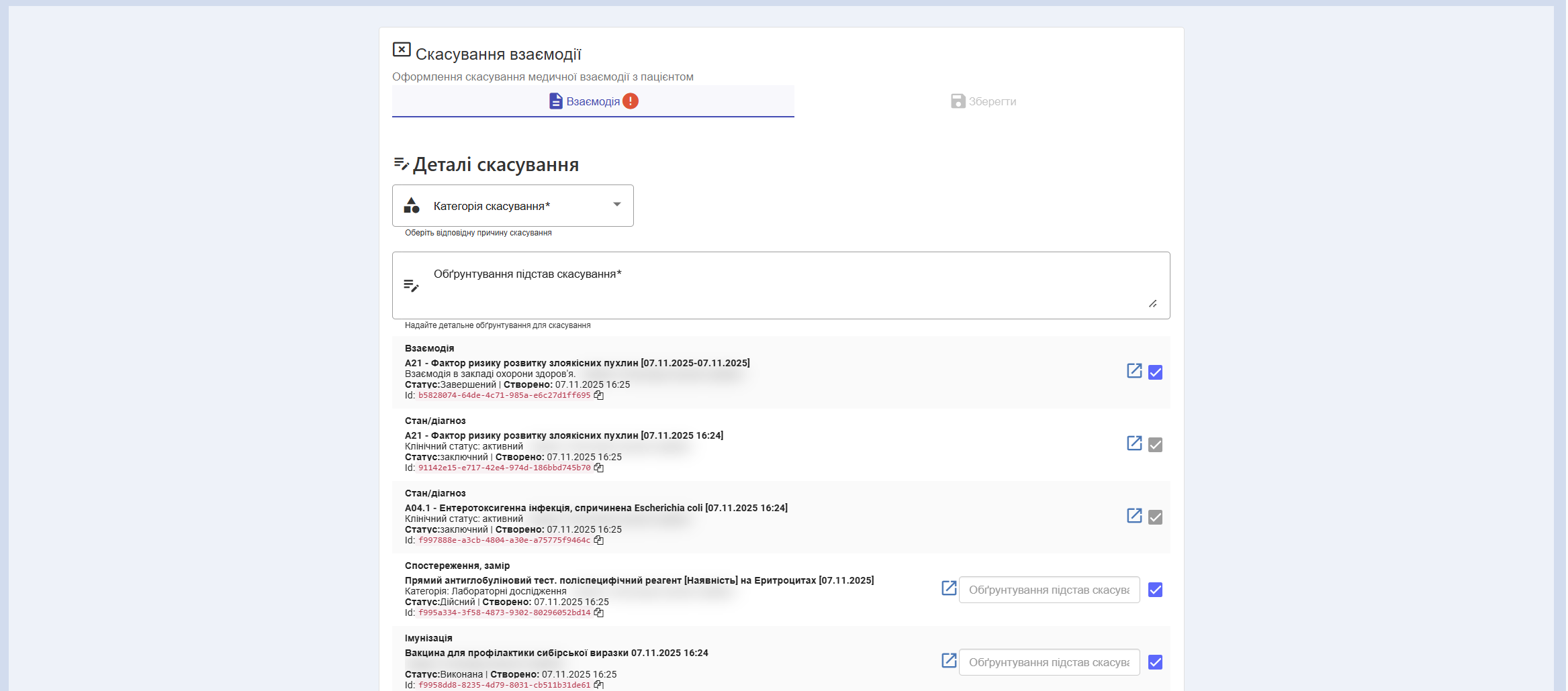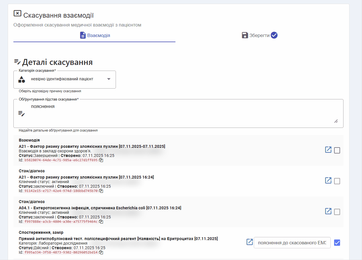 Після переходу на сторінку скасування взаємодії, лікар побачить наступну інформацію