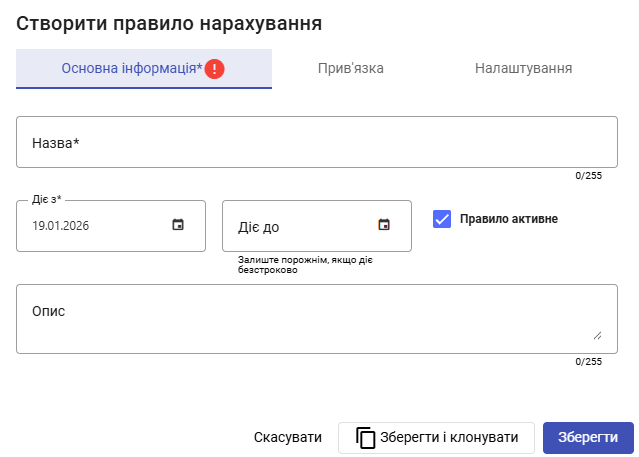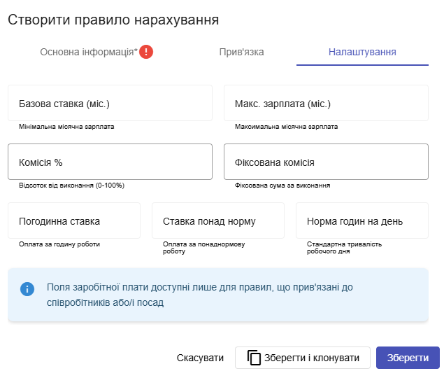- Заповніть назву правила - відображається в таблиці правил, а також в звіті по ЗП.